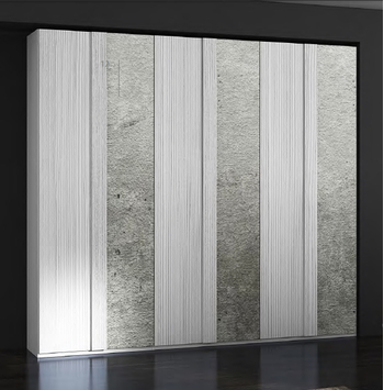 Armadio 6 ante battenti finitura cemento e larice bianco