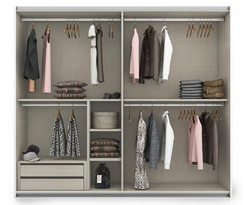 L'immagine dell'interno armadio mostra gli accessori disponibili a richiesta