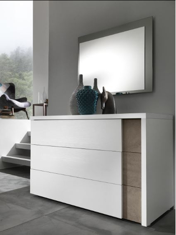 Comò tre cassetti con cassa frassino bianco e frontali bianco frassino e olmo urban.