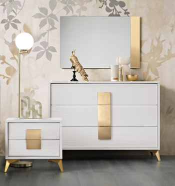 Mobile in foto: noce bianco con maniglie oro