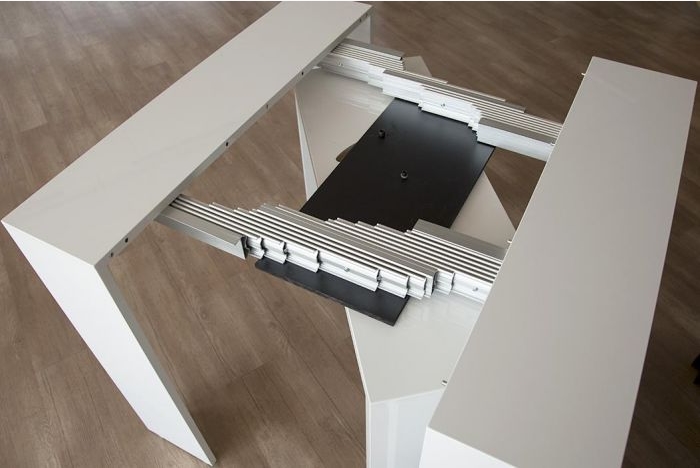 Arcobaleno 90 è una consolle allungabile fino a 302 cm con le sue 5 allunghe esterne da 52 cm, capace di ospitare comodamente fino a 14 persone.