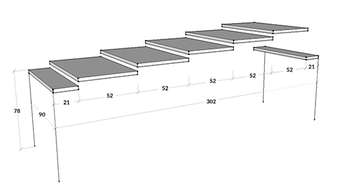 - Dimensioni con 5 prolunghe: L.90 P.302 H.77