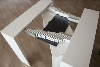Caratteristiche tecniche: struttura in MDF e pannelli in nobilitato laccati di spessore mm.18 Sacca optional per riporre allunghe € 45,00