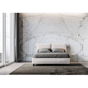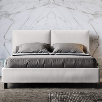 Letto Praia matrimoniale contenitore a doppia alzata con testata in similpelle trapuntata