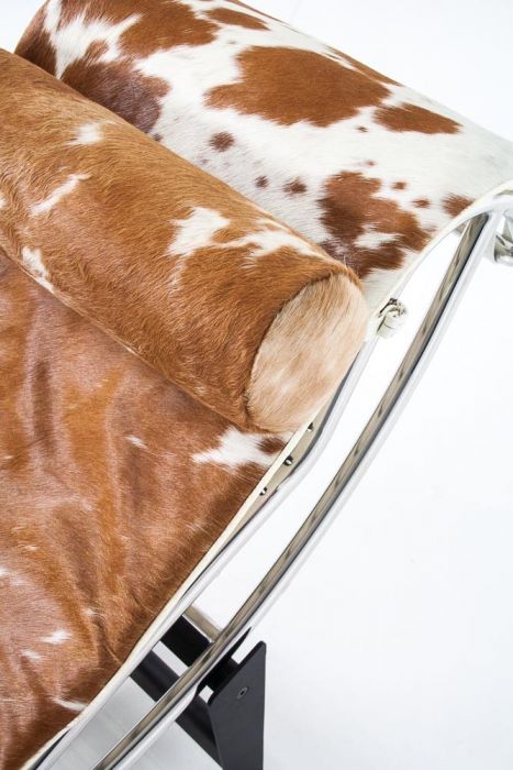 Riproduzione di Chaise Longue dal design ricercatissimo ed elegante, punto di svolta in questo tipo di prodotto, originale rivestimento in pelle versione cavallino, struttura con molle ad incastro posizionale su telaio cromato per darle robustezza e solidità.