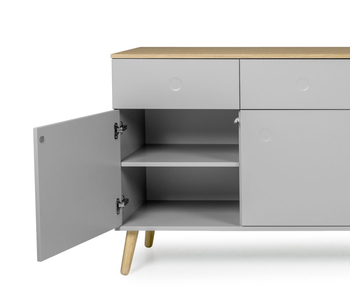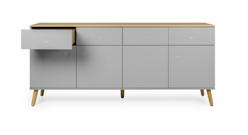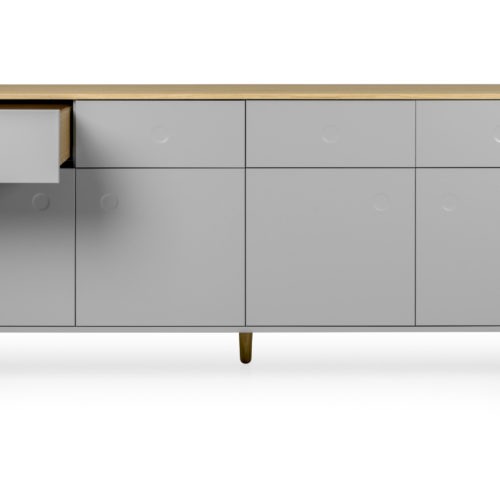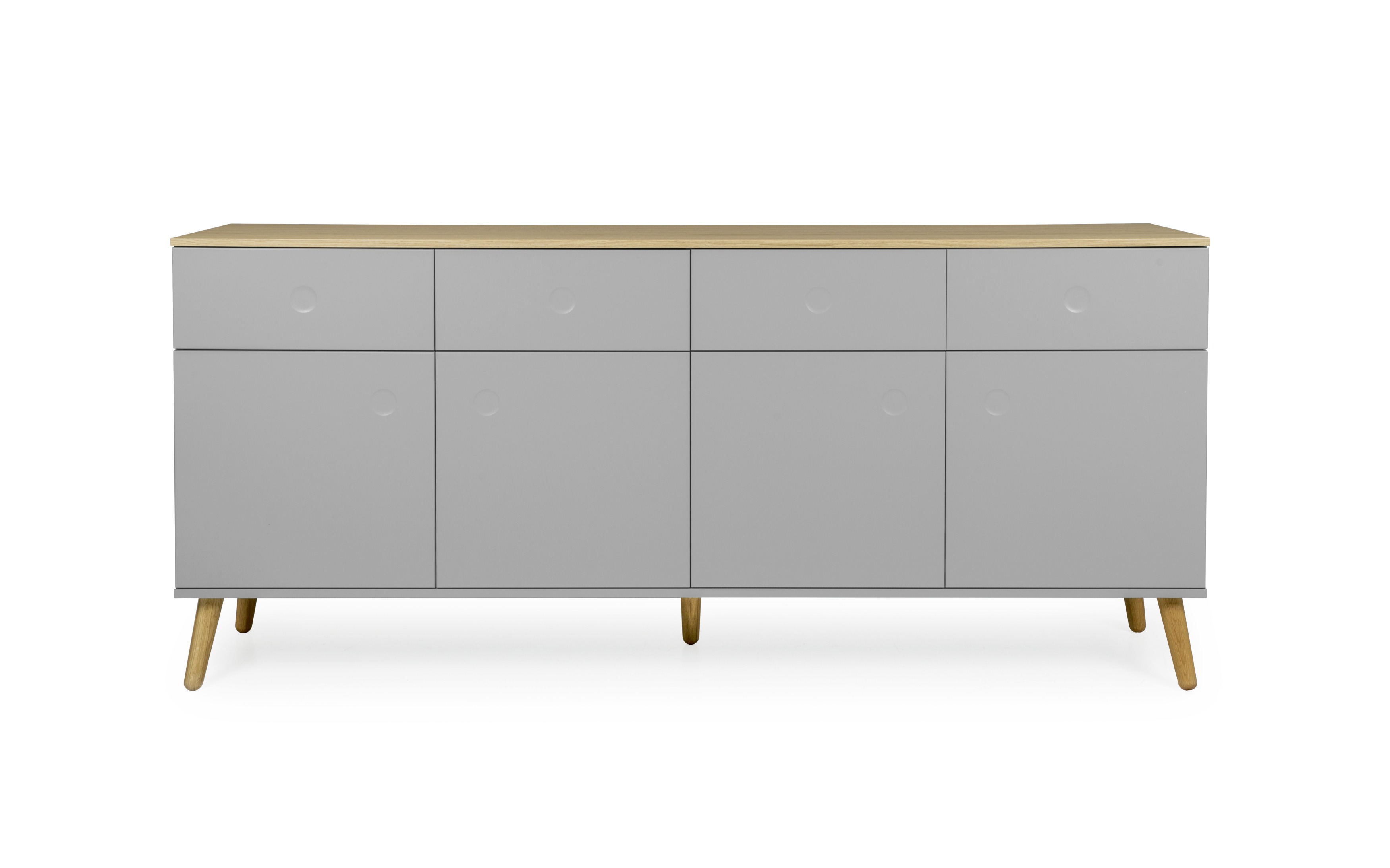 Una linea dal gusto piacevolmente retrò che arreda con leggerezza e modernità il living, la laccatura e le parti in legno impreziosiscono il mobile che si distingue per la qualità delle finiture