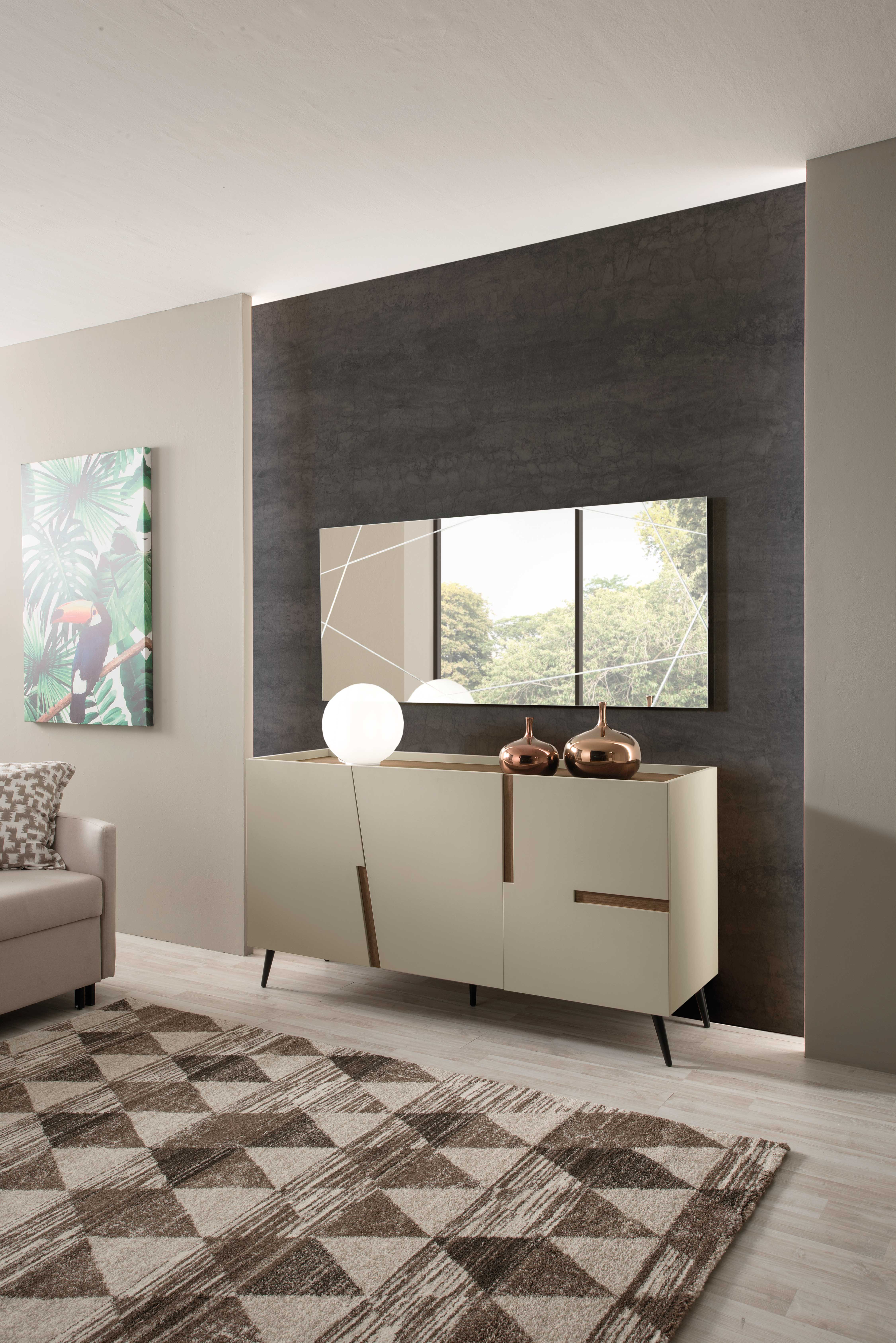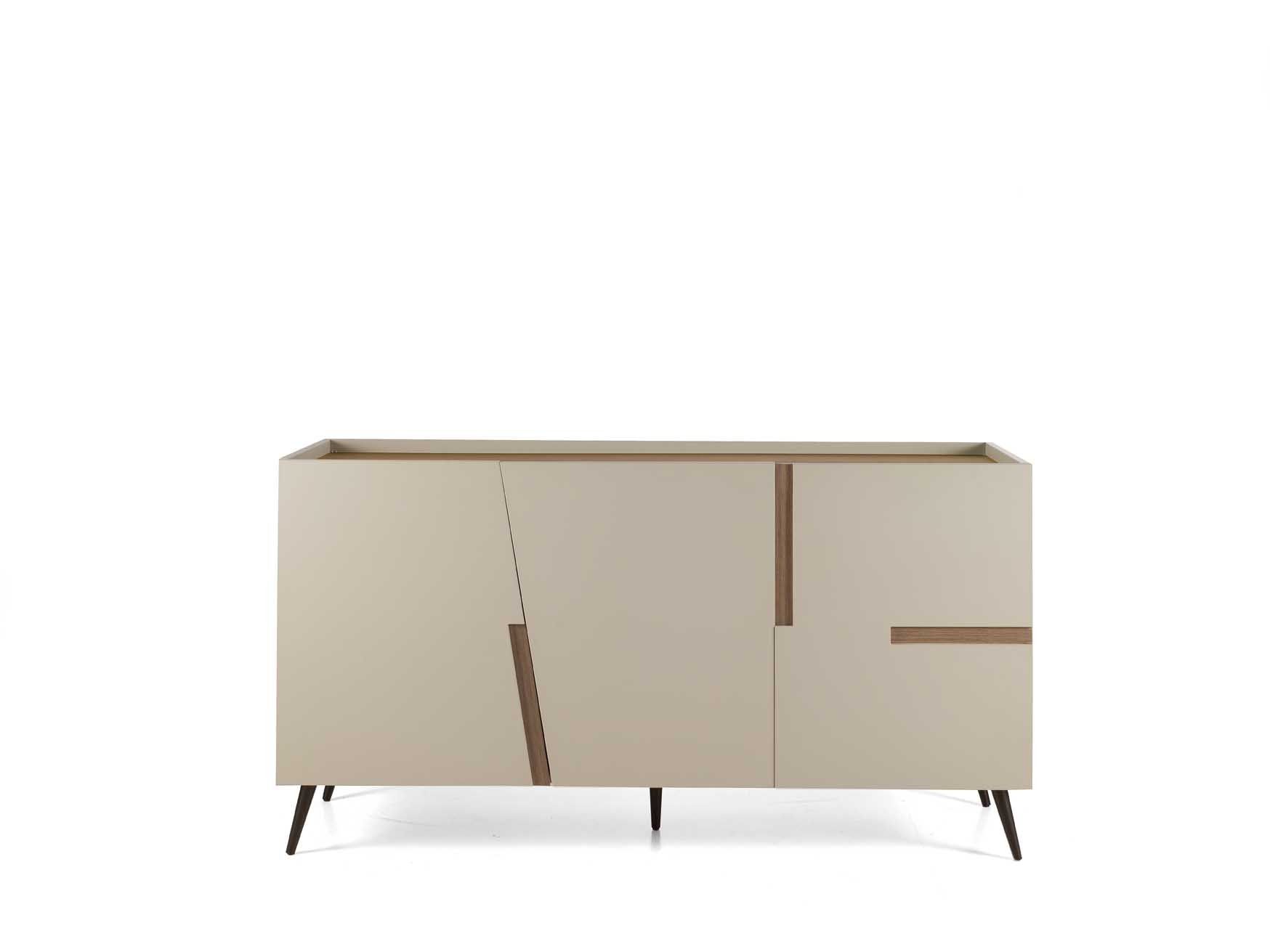 - Madia modello Gemona scocca in nobilitato tortora e 3 ante in mdf tortora con inserti effetto tek