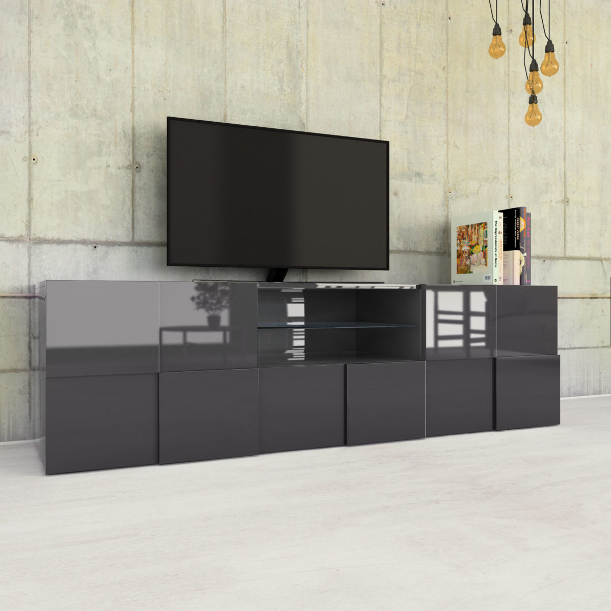 - completamente realizzato in melaminico antigraffio laccato grigio scuro lucido